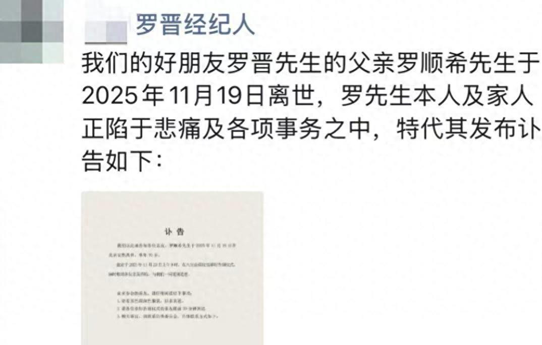 就在网友们大肆猜测的时候,却等来了一个让人无比悲痛的消息,那便是罗晋父亲因病逝世。这消息还是罗晋工作室发出的,他本人并没有发表任何声明。